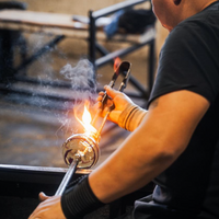 “Recycling, Handwerkskunst und Innovation stehen im Mittelpunkt unserer Werkstatt. Altglas erhält durch den magischen Prozess der Glasbläserei ein zweites Leben in handgefertigten Unikaten."
