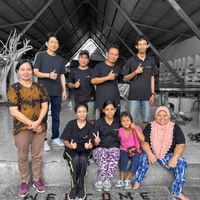 Suharto, der Inhaber der Designwerkstatt, hat eine Leidenschaft für alles, was aus Holz gemacht ist. Alle Produkte, die sie herstellen, werden in Handarbeit aus Teakholzabfällen (Teakwurzeln) gefertigt. Sie wählen die Materialien selbst aus und beschaffen sie, um sicherzustellen, dass die Materialien die beste Qualität haben und umweltverträglich sind. Die Werkstatt befindet sich in einem kleinen, schönen Dorf in Ost-Java und schafft Arbeitsplätze für die Dorfbewohner und die Menschen in der Umgebung.